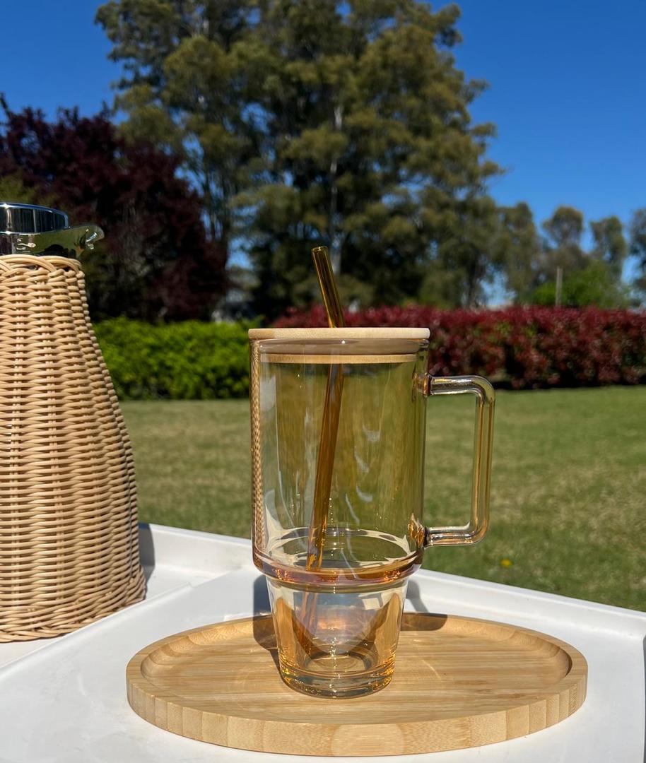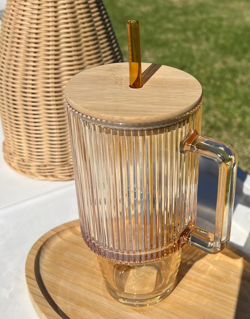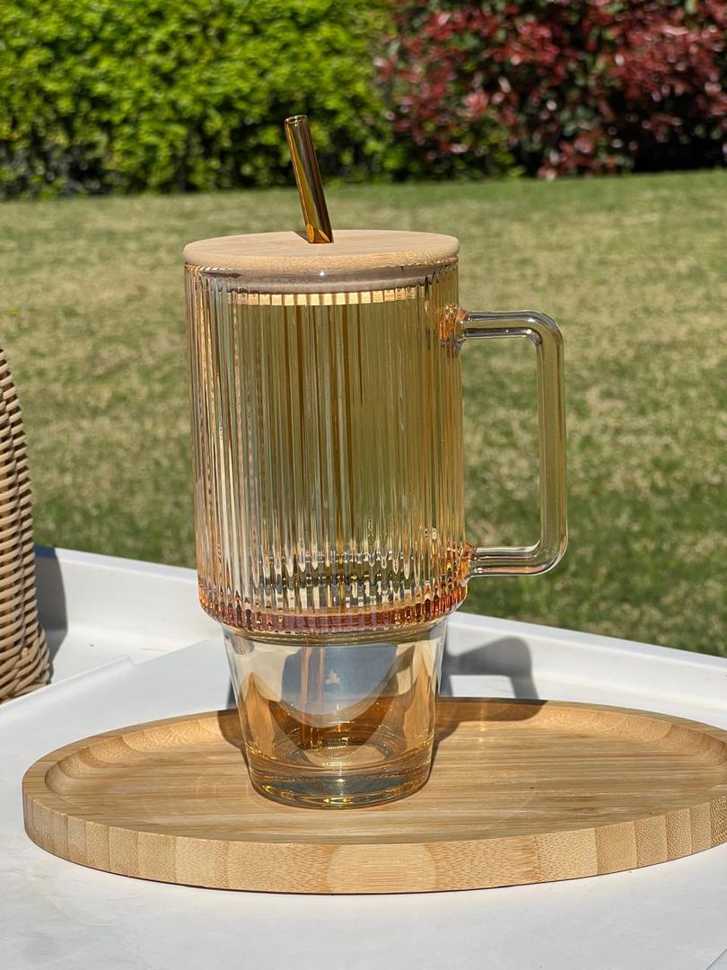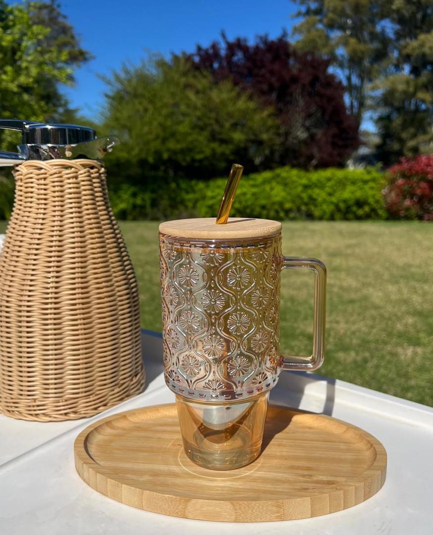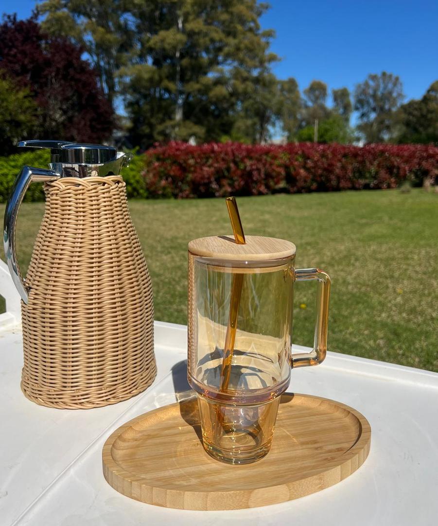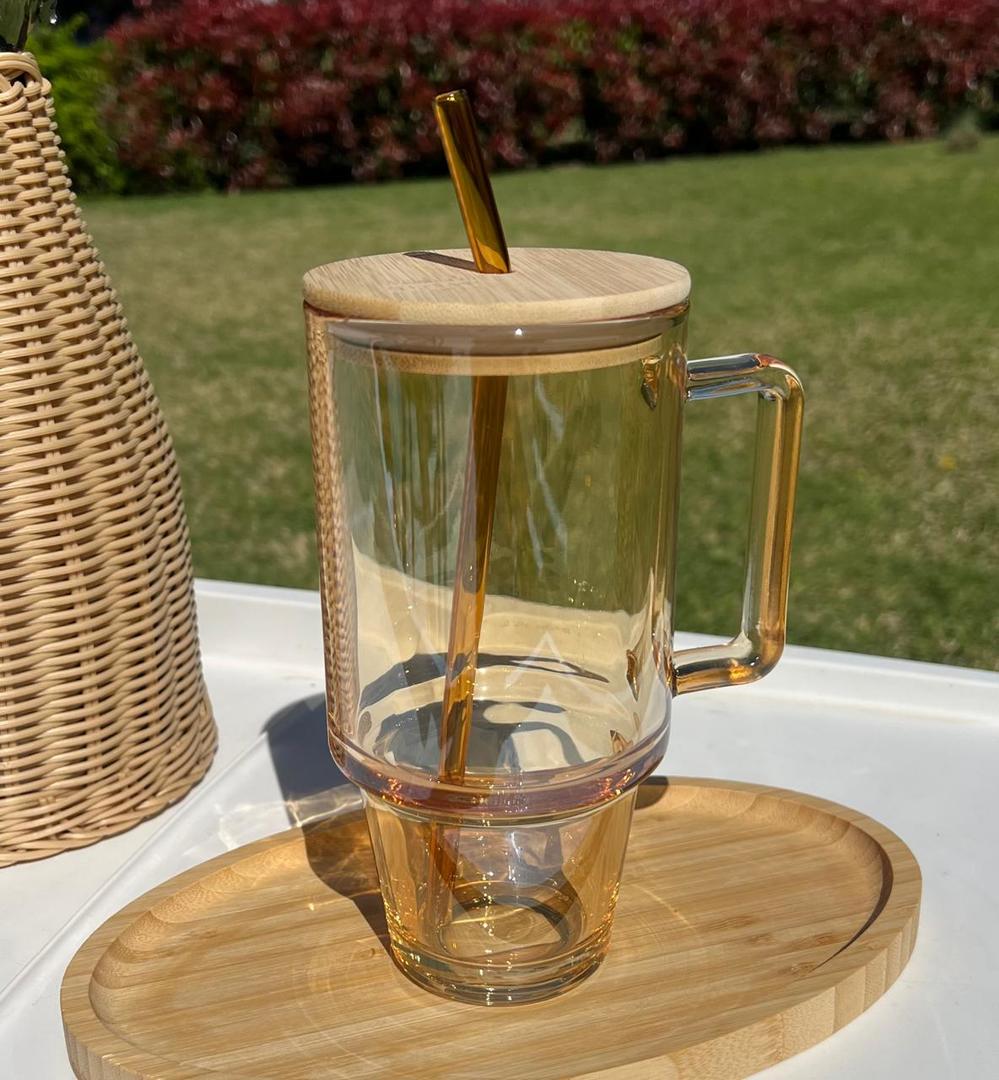 Vaso Quencher De Vidrio Con Tapa De Bambu 700ml